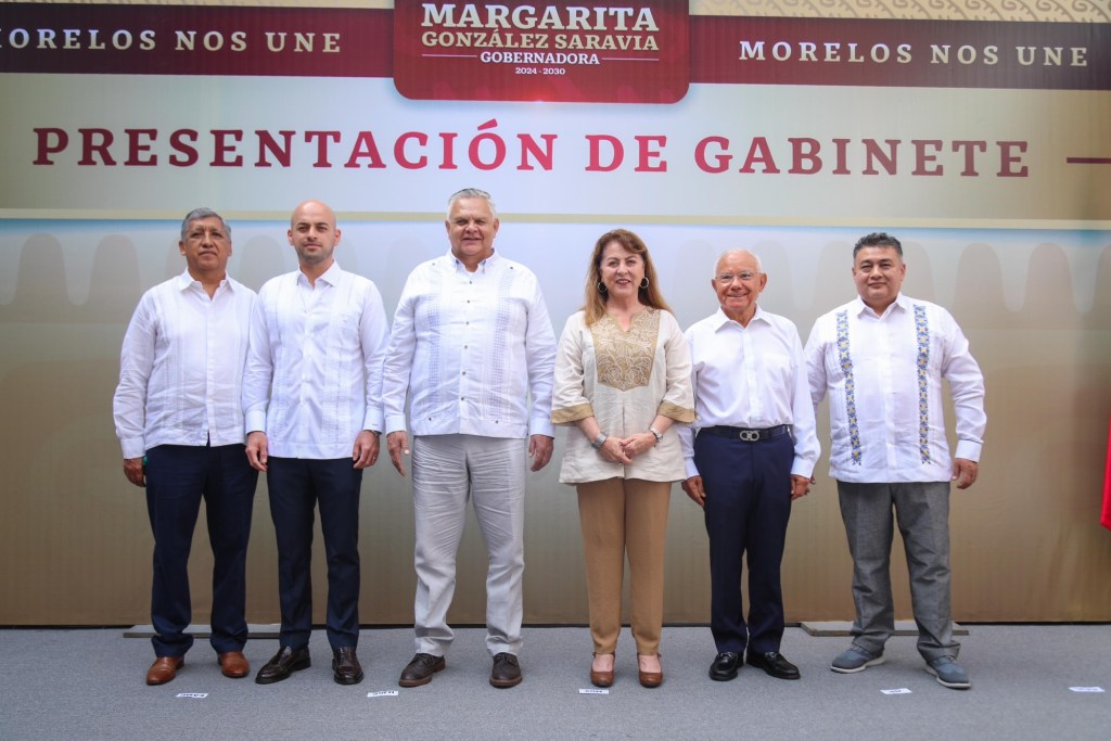 Margarita González Saravia, gobernadora electa de Morelos, presentó a los últimos integrantes de su equipo. Juan Salgado Brito fue nombrado como titular de la Secretaría de Gobierno, una de las áreas clave de su administración. Miguel Ángel Urrutia Lozano será responsable de la Secretaría de Seguridad y Protección Ciudadana, Javier García Chávez estará al frente de la Oficina de la Gubernatura, Edgar Maldonado Ceballos ocupará la Consejería Jurídica, y Mario Caballero Luna coordinará a los asesores.