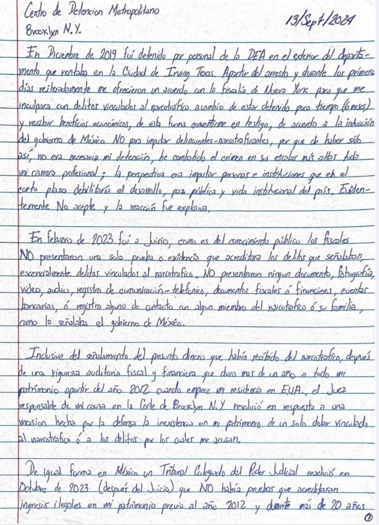 La carta se da a conocer en un contexto en el que varios criminales, como Jesús Reynaldo Zambada García, hermano de Ismael “El Mayo” Zambada, y Sergio Villarreal Barragán, alias “El Grande”, testificaron en contra de García Luna durante su proceso judicial. Según el exfuncionario, los testimonios de estos narcotraficantes también hacen referencia a una presunta relación entre el gobierno de López Obrador y el Cártel de Sinaloa.