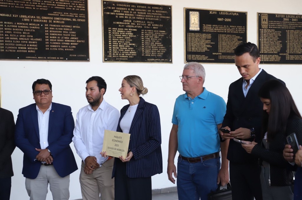 De manos del Presidente del Consejo Coordinador Empresarial, Antonio Sánchez Purón y de Óscar Segura Zubillaga, presidente de la Asociación de Hoteles de Morelos, la legisladora entregó el proyecto económico 2025, refiriendo que este, marca el inicio de un nuevo gobierno con visión de crecimiento, justicia social y desarrollo en la lucha por una economía fuerte y responsable en Morelos.