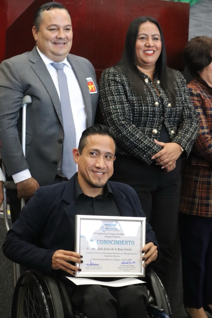El Congreso del estado de Morelos, a través de la Comisión de Atención a Grupos Vulnerables y Personas con Discapacidad que preside el diputado Alberto Sánchez Ortega, entregó este martes, en sesión solemne, el Premio a las Personas con Discapacidad “Gabriela R. Brimmer Dlugacz” 2024, a siete miembros de la sociedad morelense que se distinguieron por sus actividades en la vida artística, cultural, académica, deportiva o social.