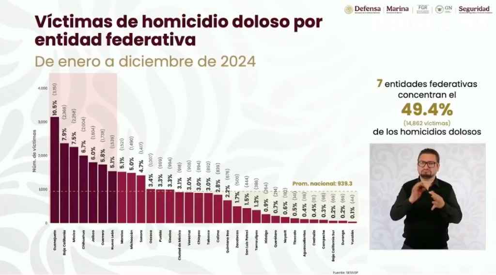 En esta estadística, los superan Guanajuato, Baja California, Estado de México, Chihuahua, Jalisco y Guerrero.