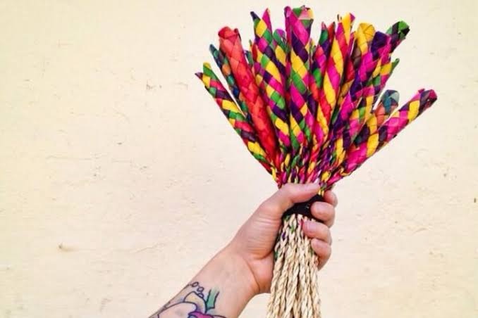 Encontrar a los artesanos, en estos días del mes de febrero con la esperanza y fe de poder vender su artesanía elaborada de manera artesanal. La pieza se tiñe de color para darle vida a cada caja de cuatro hojas de palma; se deja secar por un par de días al sol, para empezar a tejer debe de mojarse con agua para que tenga flexibilidad y no cueste trabajo trenzar.