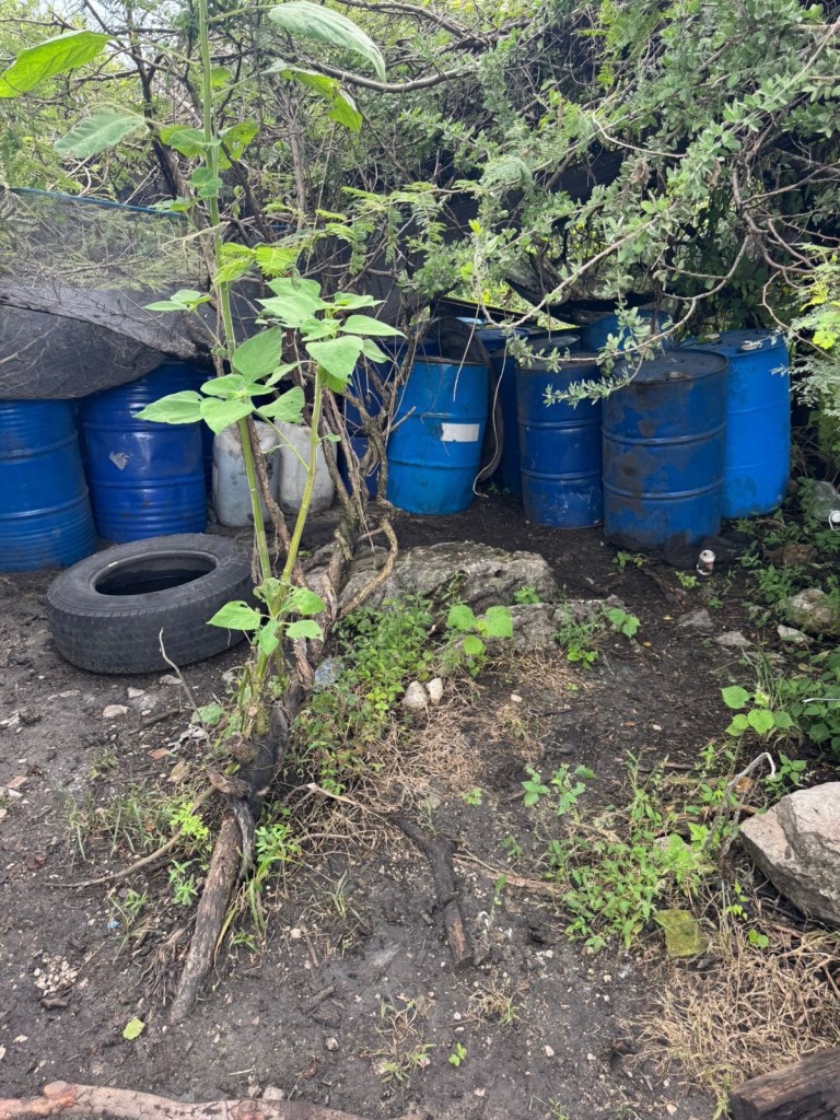 Los predios contaban con conexiones eléctricas improvisadas, mangueras de suministro de agua conectadas a aljibes tipo alberca camuflados, con capacidad de siete mil litros cada uno, y una fosa séptica. Estas instalaciones, distribuidas en medio de la vegetación, permitían la posible producción de una tonelada mensual de droga sintética tipo “cristal”, con ganancias ilícitas estimadas en más de 300 millones de pesos mensuales.