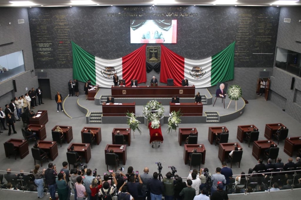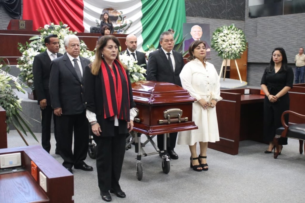 Como muestra del respeto a toda esa trayectoria, en el Salón de Plenos del recinto legislativo, legisladores locales y federales, así como funcionarios de los tres niveles de gobierno, montaron guardias de honor junto al féretro del destacado político.
